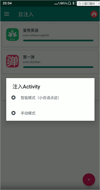2、选择好后点击确定,将会自动从服务器动态下载DEX文件,用户点击下屏幕上的智能模式即可