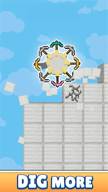 这款游戏真的挺有意思的,玩法简单但又有策略性。你可以用镐头挖各种方块,还能合成升级,解锁更厉害的工具,感觉就像在挖宝一样刺激。游戏的画面虽然像素风,但操作很流畅,挖掘时的音效和视觉反馈也很真实,让人有代入感。
