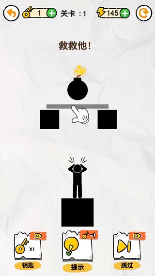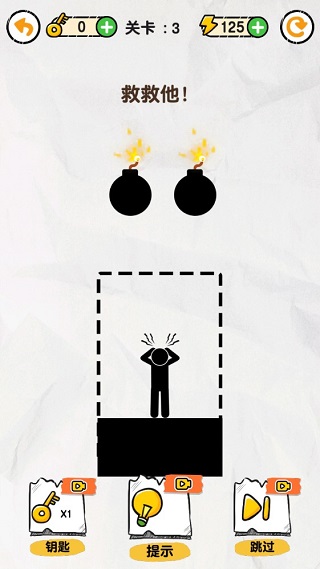 这是一款原创的益智解谜小游戏,里面饱含海量烧脑关卡,每一关,都有一个火柴人等着你开动思维来拯救他!