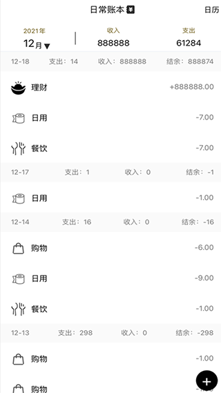 2、日历记账,可以根据日历,选择任意一天进行记账以及补记账。