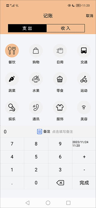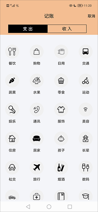 软件设计简约在首页就可以开始记录自己的生活账单了,用户可以在这里选择好自己的账单分类,为自己的收入和支出做好计划,从而让自己时刻清楚支出和收入的详细信息。针对用户的支出和收入,软件更是提供有图表功能,这让更多人直观的看到了自己的账单情况,这么简单又实用的软件,大家喜欢就快来使用吧。