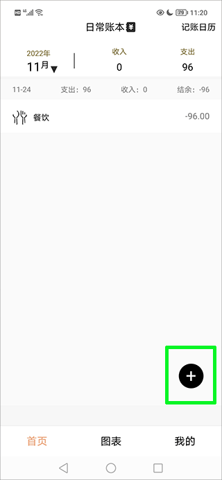 4、现在在首页就能看到自己的记录了,如果还需要再次添加,可以点击绿色方框内的按钮。