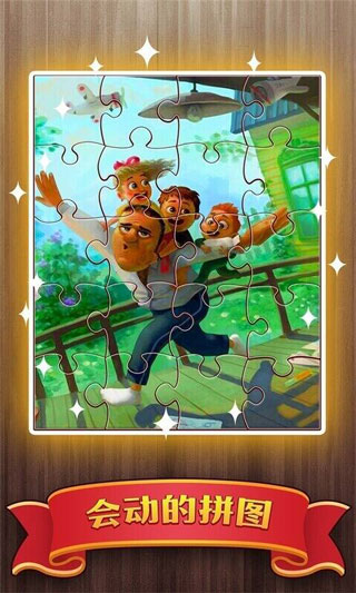 1、用手指旋转和滑动拼图的各个碎片,组成完整的动画拼图。