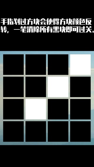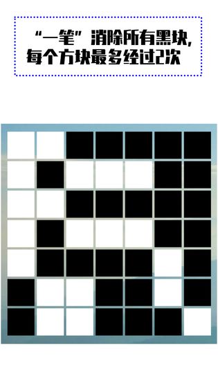 在黑白方格中尝试利用一笔消除掉所有的黑块即为闯关成功,每一个方块最多经过两次,简约直白的规则;