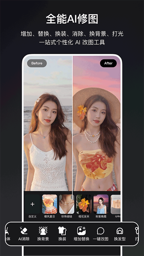 炫图AI app是一款AI驱动图像编辑工具,集修图、创作与互动社区于一体。其核心优势在于通过生成式AI技术实现“一键式”智能操作,涵盖AI增加、替换、消除、换背景、打光、身材美化等十余项功能。用户可轻松删除路人、调整光影氛围、切换发型发色,甚至将静态照片转为动态视频,满足从日常修图到创意设计的多元需求。同时炫图AI app支持点选区域精准编辑、文本指令生成内容,并配备海量模板库,操作门槛低且处理高效。其AI算法在消除杂物、换装合成等场景中表现自然,无修图痕迹,深受旅游摄影、电商带货等用户群体好评, 有需要的用户可以在本站免费下载使用。