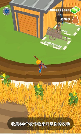 2、收割的农作物会自动进入你的背包,在背包数量收集满后,前往指定区域,也就是这里进行出售,随后在另一个区域升级你的镰刀,镰刀的升级可以加速庄稼的收割。