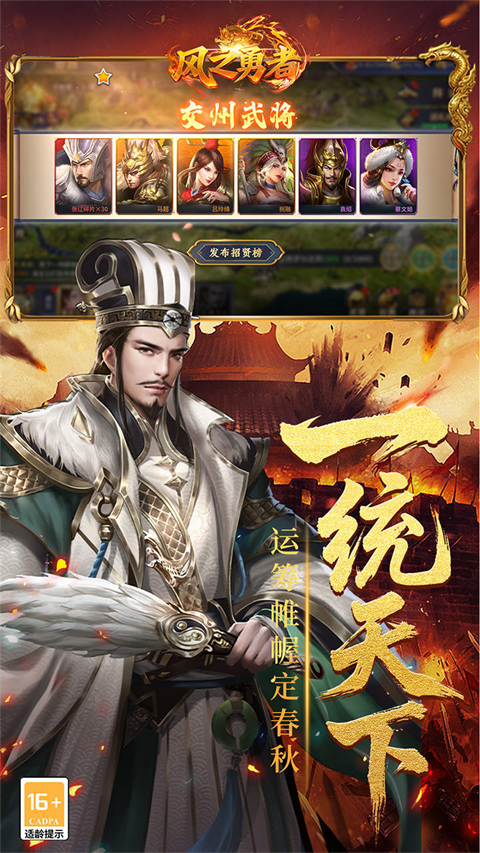 风之勇者是一款玩法丰富的三国策略手游。在游戏中,你将扮演一位城主大人,肩负着讨伐不义之徒,为天下苍生建立一个太平盛世的使命。在这个三国世界里,全国各地分布着县、郡、州各级城池,你需要从低到高逐级夺取,不断攻占城池扩大势力。在游历中解锁新州,招募全国各地的武将。每个武将都有自己的雄才,并且雄才特技丰富多彩,包罗万象,掌控着内政和军事的方方面面。因此,你需要精心培养武将,通过提升他们的能力来提高整体战斗力。此外,城池还有许多有用的效果及奖励,通过利用这些资源,建立属于你的国家,成就一番霸业!