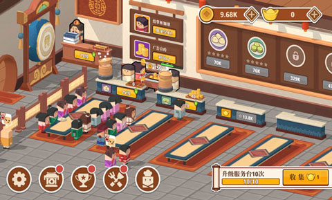 2、快速点击食桌5次,可以快速服务更多顾客。