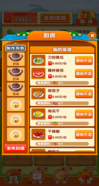 5、另外玩家还可以进入厨房根据所需原料做菜出售,确定不来试试吗?