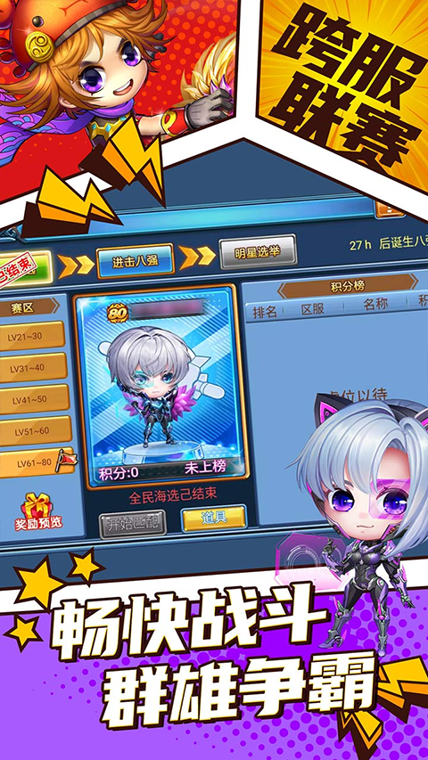 多元化社交体系,丰富的玩法离线也能玩~休闲1V1、热血2V2,一起互动不孤单!全民勇士跨服爆肝到天明!