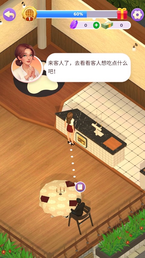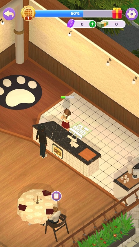 待客人用餐结束后,会自动前往吧台进行结账,完成以上操作步骤,便基本掌握了开店入门节奏,现在时间交给你处理,热心服务好每位到店的顾客,随后你便可继续装修店铺,提升服务质量与形象!