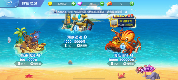 经典的美人鱼、携带巨宝的海盗船、神话异兽、西游大妖金角大王、混世哪吒等等多个boss;不同击杀反馈,给您带来丰富体验;海底世界神秘首领诸多,等你来称霸海域!