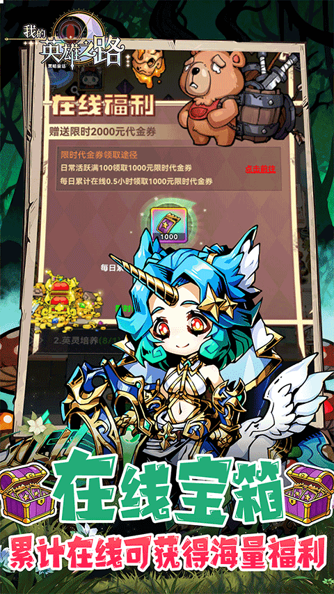 《我的英雄之路》折扣版是一款超值的策略卡牌放置手游,上线就送2000元代金券,还有SSR+铁扇公主签到免费领,简直是开局党的福音!游戏背景设定在黑暗童话世界,玩家需要收集堕落的传奇卡牌,组建自己的牌组,挑战关卡并揭开真相。游戏中有超多经典角色,比如小红帽、白雪公主、孙悟空等,通过抽卡就能获取。