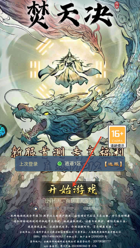 1、在本站下载焚天决,运行游戏选择区服并开始游戏;