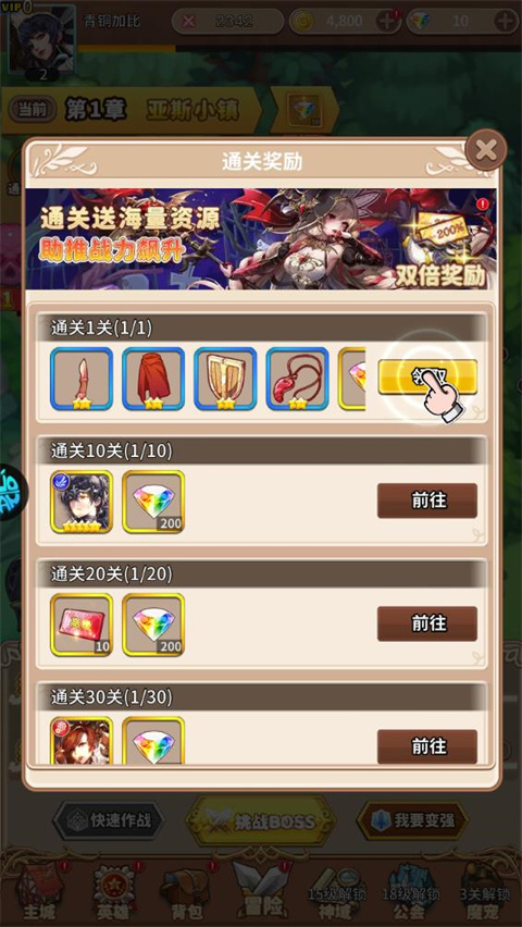 1、玩家进入号令天下2折扣版游戏之后就可以领取新手英雄豪华礼盒,获得大量代金券、钻石等奖励。