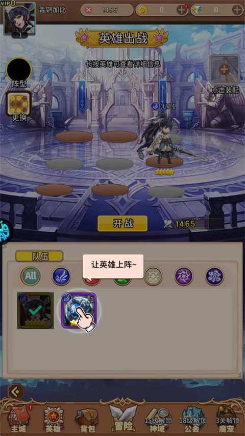 3、然后就可以上阵新招募的伙伴,一起战斗,挑战BoSS