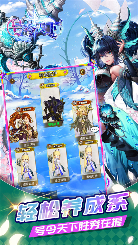 《号令天下2》是一款全新的二次元卡牌养成手游,玩家可以在游戏中召唤强大的女神角色,并通过升星、装备、突破等玩法提升实力,组建战队进行冒险。游戏提供了丰富的主线剧情闯关以及多种竞技场玩法,如竞技场、冠军赛和跨服赛,让玩家体验不同类型的挑战。