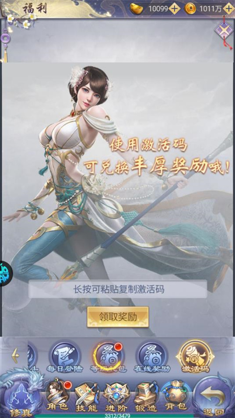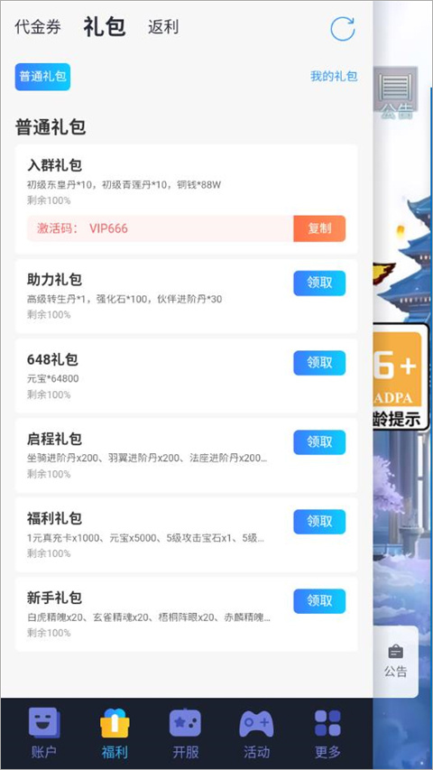 1、进入游戏后,点击屏幕上的悬浮球,领取礼包兑换码