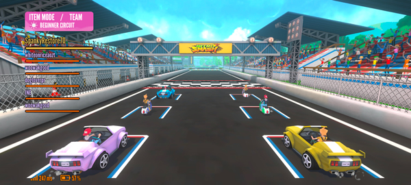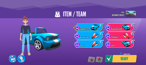 新手的话,直接打开游戏选一辆车就能开始比赛了。不过要想赢还得讲究策略,不仅要速度快,还要会用道具,在关键时刻攻击对手或者保护自己。感觉这游戏特别适合和朋友一起玩,组队开黑超有趣!而且还能解锁各种酷炫的赛车,成就感满满。