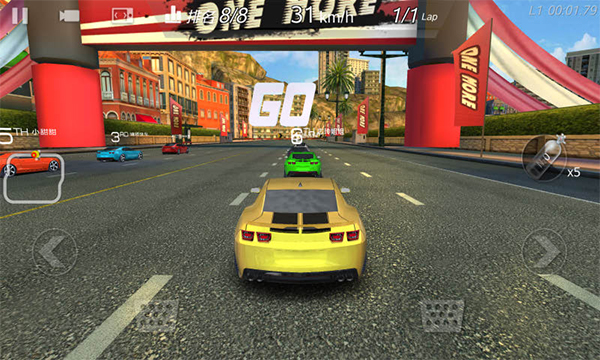 玩法方面也比较简单,两边控制方向,刹车、制动一览无遗,根据左侧小地图实时观察前方路途情况,尽可能的不要发生撞击,率先突破终点。
