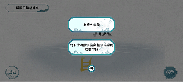 3、首先我们进入关卡以后,多次点击【猴】左侧的部首,等待它变成提手旁。