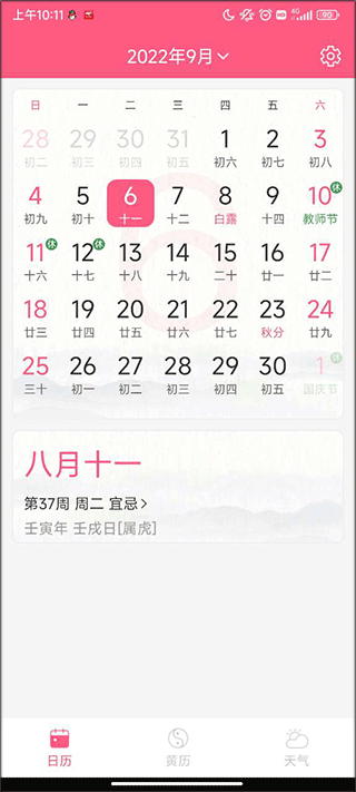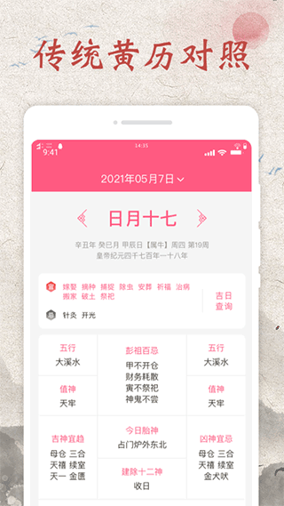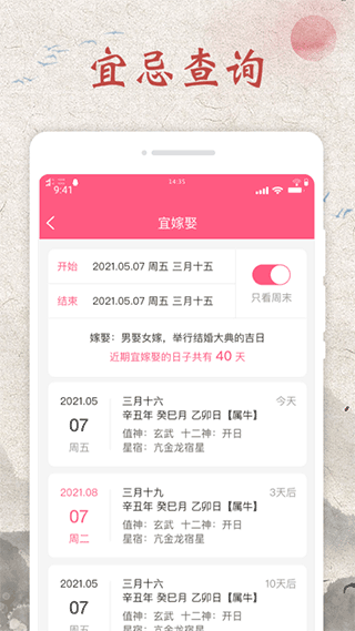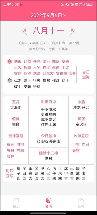 2、点击黄历可以清楚的了解到那天是吉日或忌日。