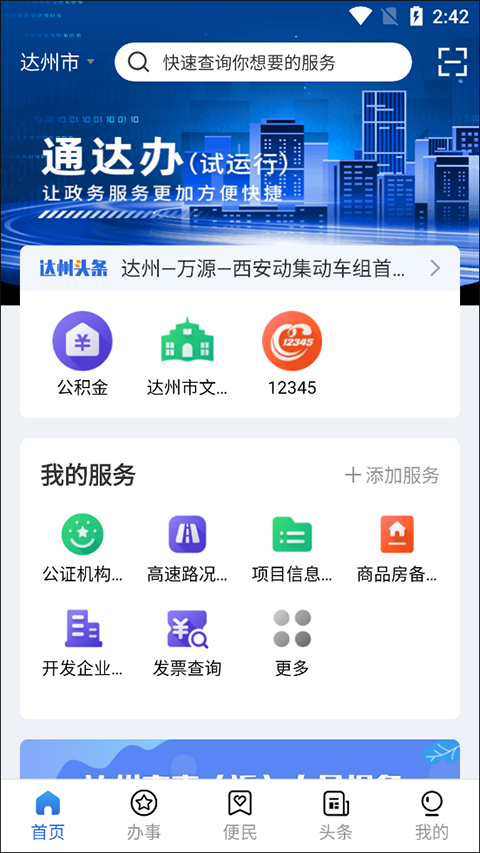 达州通达办app全方位提升政务服务自然环境,以及提高政务服务工作能力和水准,从而更好的促进社会发展治理能力和治理体系智能化,完成全方位信息共享、城市环境整治水准提提升、聪慧化城市服务,当然在这里的所有的业务申请都是可以直接到达相关部门的人员手里,直接就可以完成各种材料的审批,可以说非常的方便,有需要的朋友欢迎前来下载。