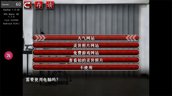 2、操作提示:滑动屏幕切换视角,点击场景元素互动(如电脑、窗帘、手电筒等)。