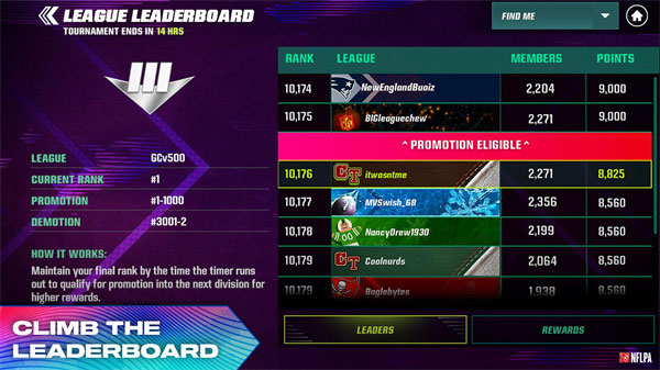 - 加入 Madden Mobile 联赛,迎接新挑战、每两周一次的无限竞技场锦标赛和更新的奖励