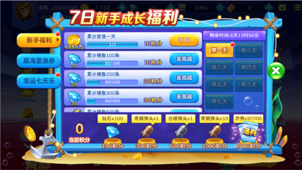 3、7日新手成长福利助力你捕鱼;