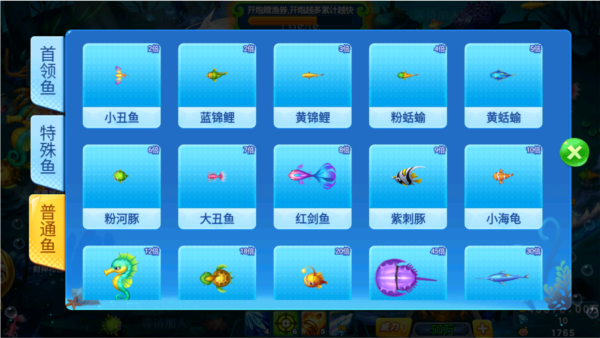 - 五大渔房、百变鱼种、千倍BOSS、万倍炮台,刺激不封顶!