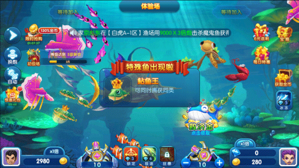 各类排行榜,告诉世界你就是那个要做海贼王的男人! 捕获锦鲤冲榜有大奖拿哦!活动期间,在经典模式10倍及以上倍率房间均可收获锦鲤,累计重量参与排名!女神男神齐齐争榜,锦鲤买卖由你决定,好友之间可以讨要哦!快喊你的小伙伴一起行动吧!