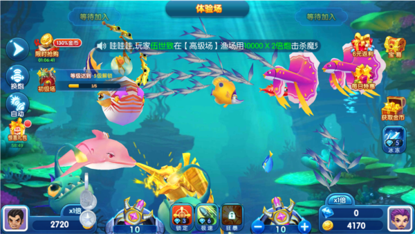 炮台分为1-10000炮,不同炮台发射的炮弹威力迥异,所需金币和玉石也不同。因此,我们需要根据捕鱼目标来灵活选择炮台,以实现最高性价比的收益。