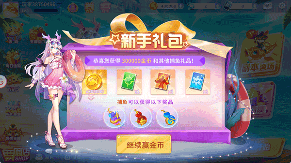 2、官方的新手礼包有金币和其它捕鱼礼品赠送,继续参与游戏领取更多金币