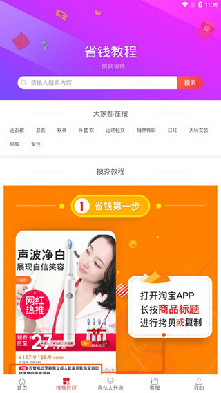 1、隐藏优惠券搜索功能,用户也可以在这里直接非常方便的领取各种类型的优惠券资源。