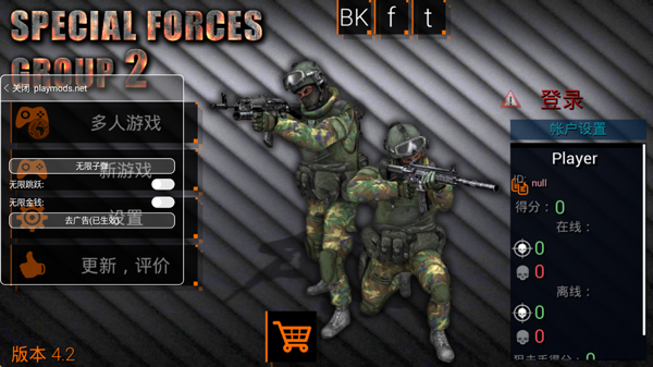 ps:小编这里带来的是特种部队小组2内置MOD菜单最新版,游戏已经成功破解修改,内置作弊菜单,拥有无限子弹、无限跳跃、无限金钱、以及去广告等功能,让你享受到更加畅爽的体验。
