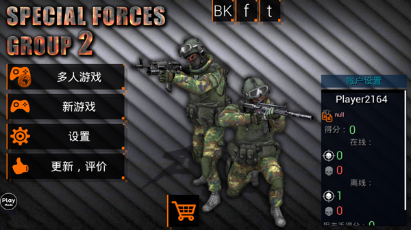 特种部队小组2是一款第一人称射击游戏,英文名叫Special Forces Group 2,作为该系列的第二部,其玩法和画风都和经典游戏CS相似,但是相比较于第一部的玩法模式,游戏在经典的复活、夺旗、僵尸模式之上还额外增加了爆破模式,可以充分满足大部分玩家的射击需求,可以说是每个游戏爱好者们的必备手机游戏。