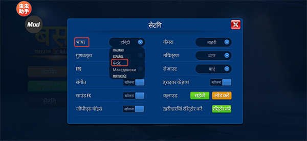 1、进入终极巴士模拟器印度中文版游戏内我们需要先将语言修改为简体中文,这里选择第三个选项。