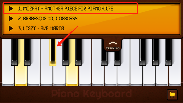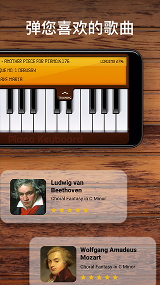 3、“training”中支持用户跟练各种经典乐谱,更快速的掌握弹奏技巧