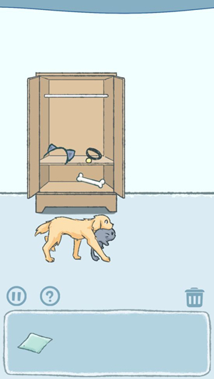 5、在柜子里拿到棉花,把棉花给狗狗,狗狗会把抱枕叼回来,拿走抱枕,再拿走抱枕下面的猫毛,然后把猫毛给狗狗,狗狗就会把小猫叼过来。