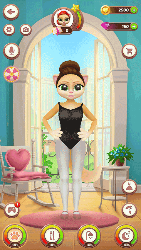 在这款游戏中,虚拟宠物将穿上高雅的芭蕾服装,展现其舞步和芭蕾舞技,您只需要确保这只优雅的会说话的猫出席每一堂芭蕾舞课,并尽享跳舞的乐趣。