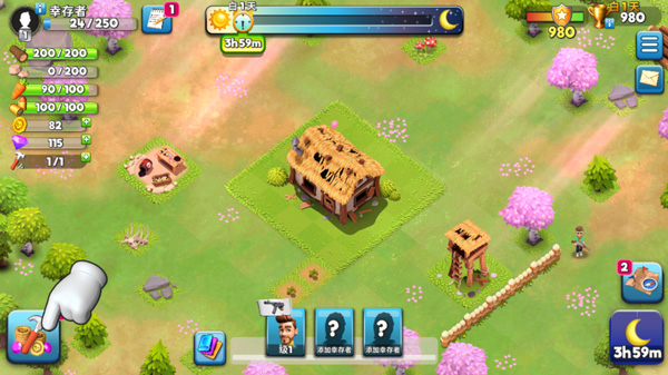 3、白天是你的幸存者队的安全时间。在部落集会的同时,派遣你的团队在夜幕降临之前寻找战利品,武器和新兵。