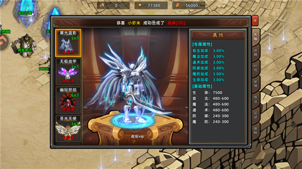 神装不仅可以增强生命、攻击、魔法等基础属性,还带有攻击加成、道术加成等,极大提升战力。