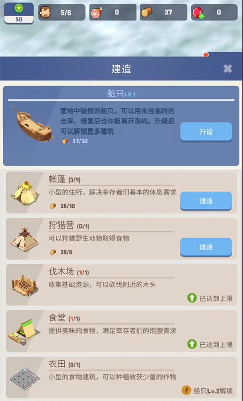 3、点击游戏界面中心的建造,可按照实际寻求来建造其他东西