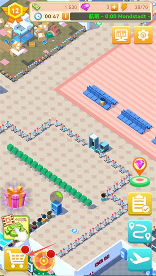 游戏中玩家需要建设超市、洗手间、贵宾休息室、餐厅、吸烟室等等,来满足乘客的各种需求。并且要平衡建设投入与收益,合理安排航班时刻表,避免航班延误与冲突。该游戏需要玩家挑战自我,努力让机场实现盈利,最终成就全球最大机场。