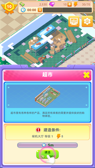 当然,乘客在候机的时候会有更多的需求。修建一些商店,比如超市和餐厅是一个不错的选择。这些商店不仅可以打发乘客的候机时间,更可以为你带来可观的收入。