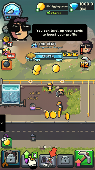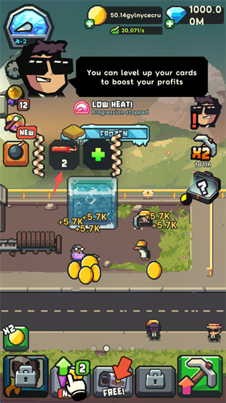 • 升级你的矿场,获得无限的增量放置型利润。