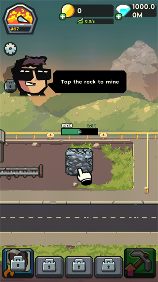 1、开局需要玩家手动点击石块进行“挖矿”。