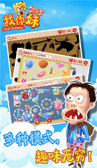 找你妹2015官方正版是一款风靡全球的找图类游戏。该款游戏延续了找你妹系列的经典玩法,以“找物品”为核心主题,并融合了RPG游戏元素。游戏中玩家需要在寻找妹妹的过程中,展开一系列的冒险,玩家可以使用上百种趣味道具,如“原子弹”,“庆丰包子”,“蓝屏按钮”等等,无数精心雕琢的细节和游戏难度、玩法的转换,给予玩家持续不断惊喜感和新鲜感,使玩家乐在其中。此外,找你妹2015游戏还新增了奖励模式、安检模式、数字模式、轮廓模式4种游戏模式,以更加自由便捷操作、精美清新的画风和诙谐动人的故事情节,将风靡全球大找茬风暴再次点燃。喜欢的朋友快来下载体验吧!
