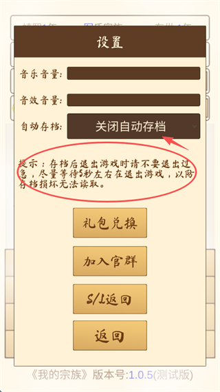 4、将自动存档开启,并且注意,存档后,等待5秒后再退出游戏,放置存档丢失。